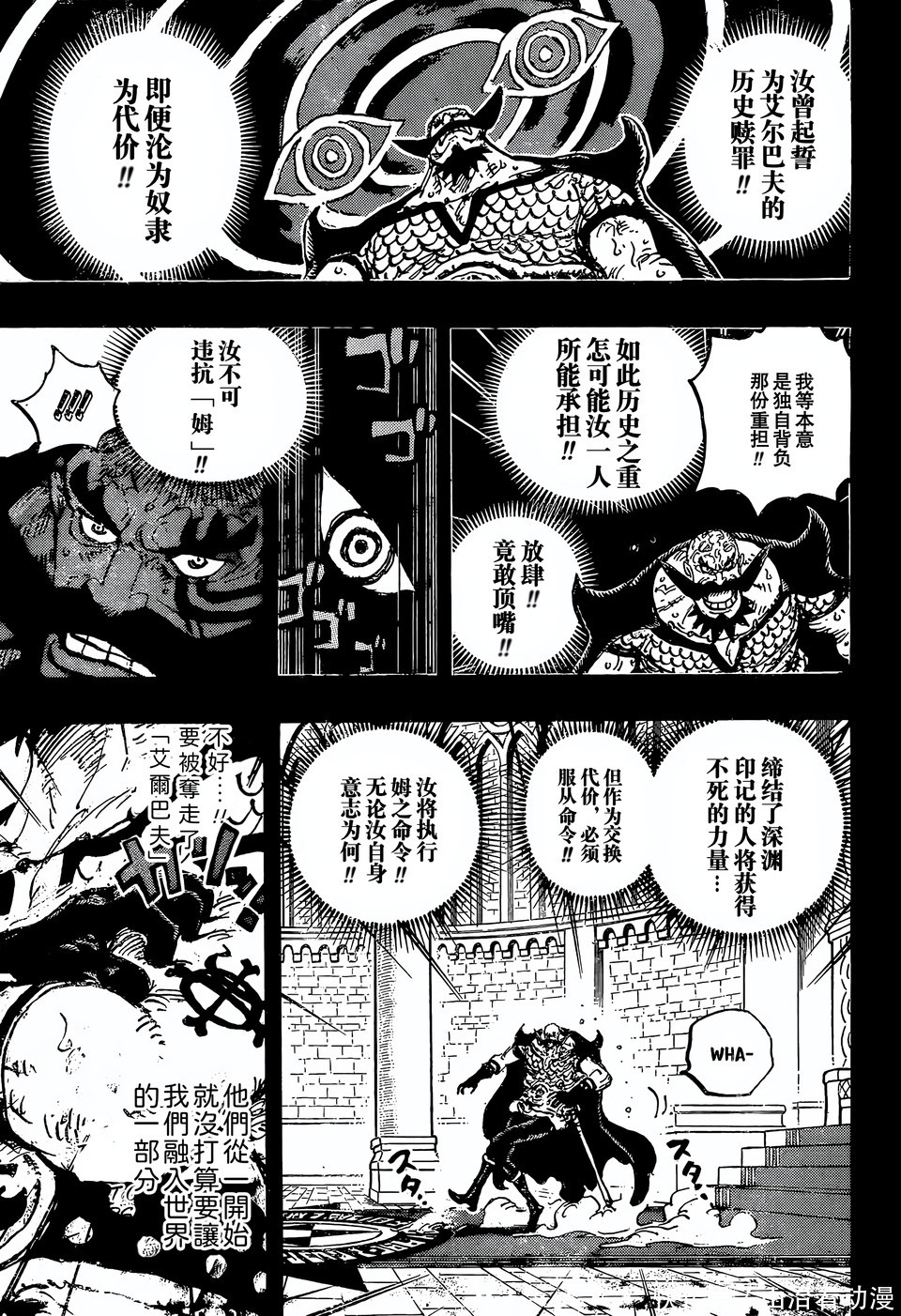 哈拉尔德国王想要成为神之骑士团,他已经投靠了世界政府,为了巨人族的未来,他甚至可以成为天龙人的奴隶。红发香克斯已经回到圣地玛丽乔亚,他成为神之丛刃,不久后他成为神之骑士团,红发却提前跑路了。