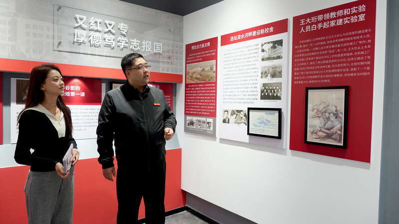 大连理工大学校史馆副馆长李哲在红色办学传统展聚焦“自力更生”的精神内核,“‘由党创办、与国同行’不是口号,而是代代大连理工大学师生的行动自觉。”1951年学校选址凌水屯建新校舍,土木系学生10多天完成76万平方米测绘,教师带领学生住工棚、吃简餐参与建设。“当时为响应国防海军建设需求,学校几乎从零起步,没有人才就互教互学,没有场地就冒险挖地基,短时间内培养出百余名造船人才,后来都成为造船行业的骨干。”李哲特别提到,“首批校史讲解员在施工场地开展‘无实物’培训,如今156名学生讲解员传承的,正是这种自力更生的红色基因。”